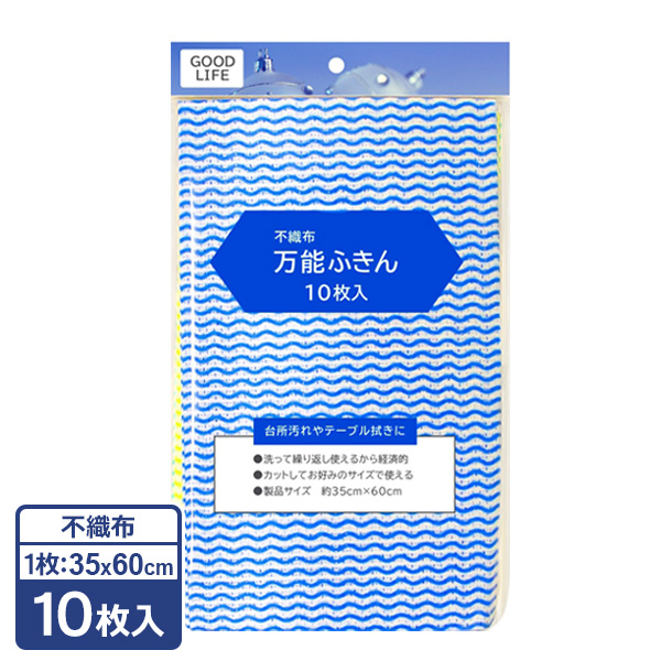 万能ふきん 35×60cm 10枚入 W-50 | 不織布 ふきん キッチンクロス 台所 食卓 油汚れ 吸水性 拭き取り フキン