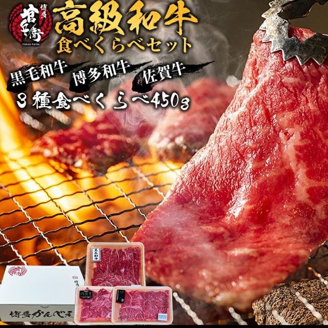 ブランド和牛食べ比べセット(佐賀牛ロース150g 博多和牛三角バラ150g 黒毛和牛カルビ150g) 送料無料 バーベキュー BBQ 焼肉 焼肉セット 簡単 国産 黒毛和牛 和牛 御祝い おつまみ 家焼肉 家飲み お祝い 誕生日 お中元 御中元