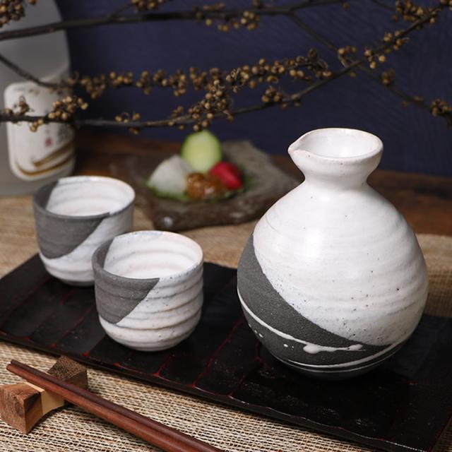 信楽焼 徳利&ぐい呑み2客セット 320ml(満水時) 酒器セット 冷酒器 熱燗 陶器 酒器揃え 還暦祝い 父 おしゃれ和食器 日本製 徳利 おちょこ カップ 食器 お酒 焼酎 焼き物 注器 潮騒(ブラック) 酒器セット w418-10