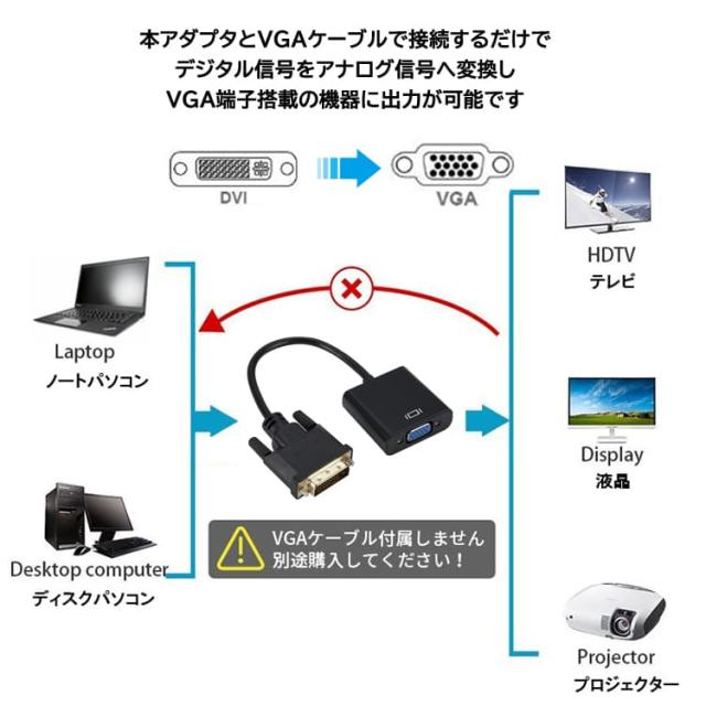 ■お手持ちのVGAケーブルと組み合わせてDVIからVGAへの変換が可能