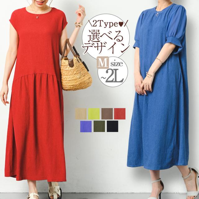 切り替えでふんわり フレアー シルエットが可愛い フレンチ袖ワンピースとボリューム袖がポイントのゆったりワンピースの2タイプでラインナップ。サラッとした素材で涼しく快適。裏地がないので涼感たっぷり。透けが気になる場合はペチコートなどのインナー着用をおすすめします。