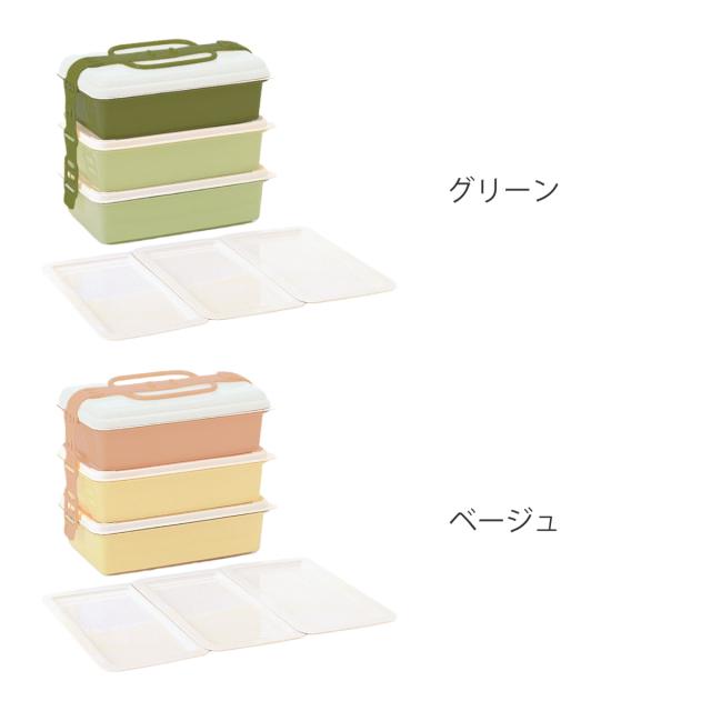 《 LH13547 グリーン ベージュ 三段重 ピクニック弁当 行楽弁当 オードブル重 重箱 御重 ファミリーランチボックス 大人数 ファミリー 家族 イベント 行楽 ピクニック 遠足 お花見 レジャー 運動会 アウトドア キャンプ バーベキュー BBQ 》