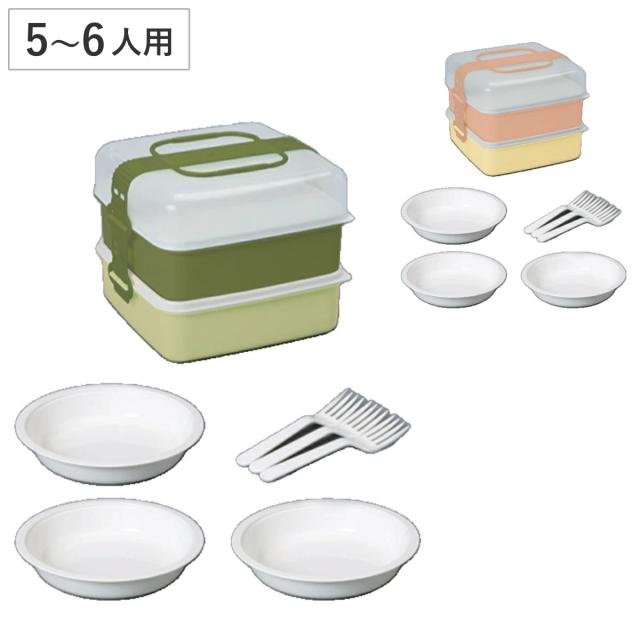 お重 2段 リオパックL 5400ml 取り皿付き ( ランチボックス 行楽弁当箱 ニ段 大容量 5人 6人 弁当箱 ピクニックランチボックス ベルト付き フォーク付き 入れ子式 日本製 )