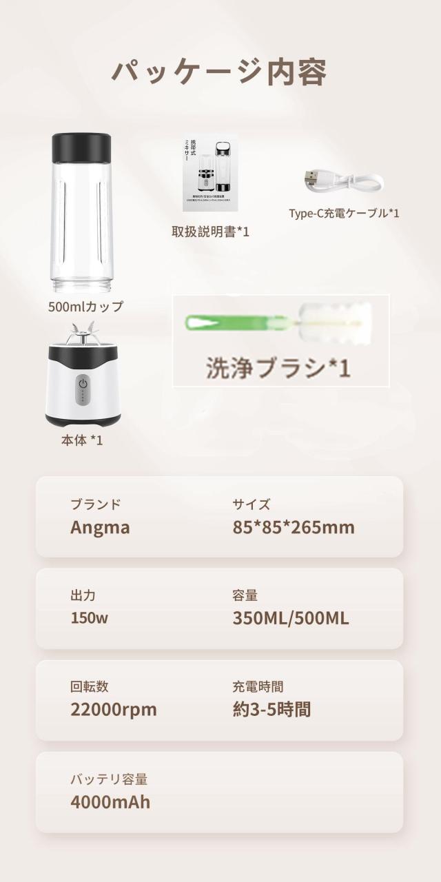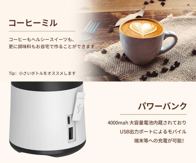 【50%OFFクーポンで4990円】1台4役 ミキサー ジューサー 丸洗い可 コードレス スムージー コーヒーミル 保護機能 USB充電式 送料無料