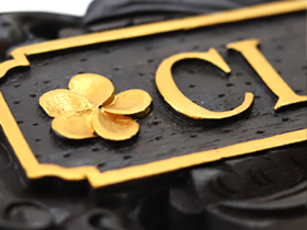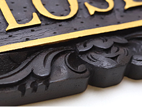 文字は貼り付けでは無く、周りを彫って立体的にしています。文字の周りのランダムな点々は、文字を立体的に見せる工夫ですと職人さんが言っていました。こだわってくれています。