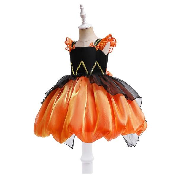 送料無料 2点セット ハロウィン 仮装 子供 女の子 衣装 バッグ付き halloween 子供ドレス ハロウィン コスプレ 可愛い コスチューム ワンピース コスプレ衣装 ドレス カボチャ 魔女 パーティドレス プリンセスドレス 発表会 結婚式 コンクール