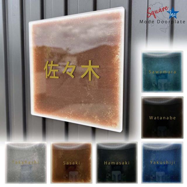 【印刷Ver】 表札 おしゃれ 戸建て 宅配ボックス 郵便ポスト アクリル ドアプレート 正方形 ネームプレート 工事不要 オシャレ スマート シンプル リッチ 高級感 貼るだけ 軽い 軽量 マンション アパート 賃貸 戸建 両面テープ アンティークゴールド 金文字 ゴシック体