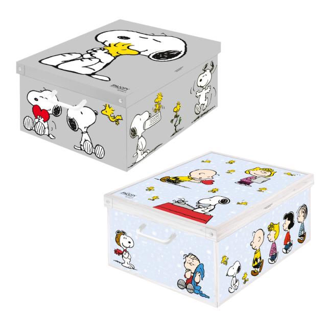 収納ケース スタッキングコンテナ スヌーピー L イタリア製 ( 収納ボックス クラフトボックス ケース 収納 ボックス 紙製 クローゼット収納 SNOOPY 小物収納 小物入れ 丈夫 頑丈 箱 衣類収納 インテリア おしゃれ ハンドル付き )