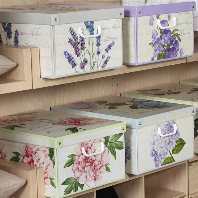 《 LH13516 幅32×奥行42×高さ17.5cm オシャレ お洒落 スタッキング ふた付き フタ付き 蓋 靴 洋服 衣類 帽子 本 小物 おもちゃ オモチャ箱 おもちゃ箱 オモチャ入れ おもちゃ入れ おもちゃ収納 オモチャ 玩具 書類収納 CD DVD 積み重ね 整理整頓 仕分け 棚 クローゼット ラベンダー パンジー アジサイ 段ボール ダンボール 》