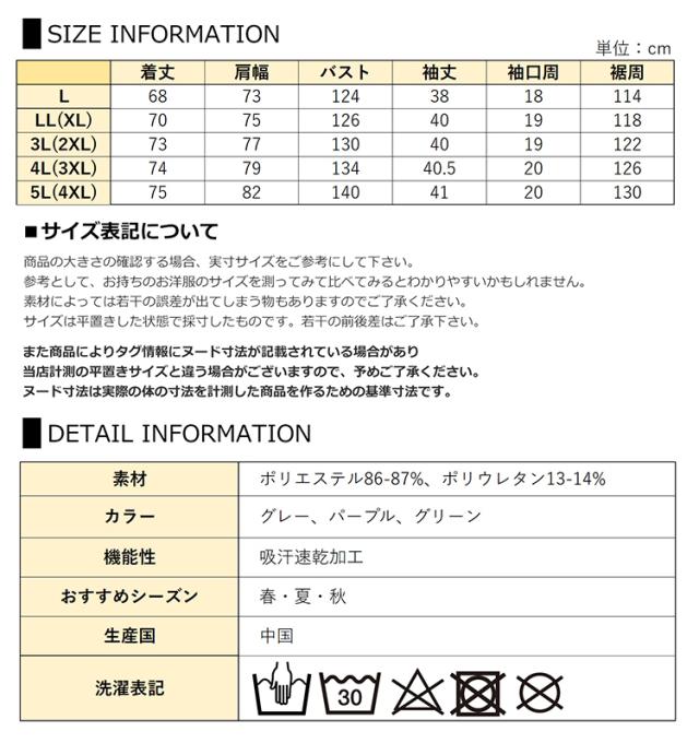 5L(4XL):着丈75 肩幅82 バスト140 袖丈41 袖口周20 裾周130