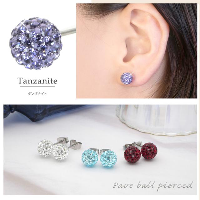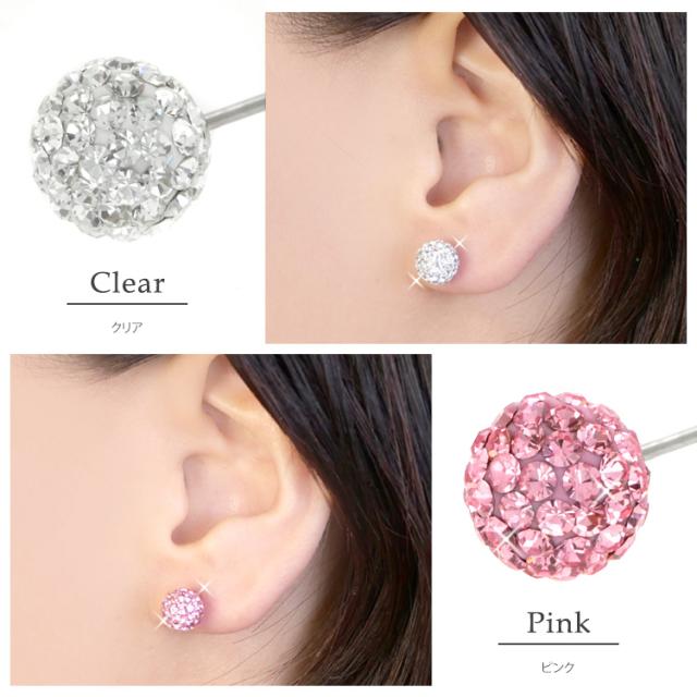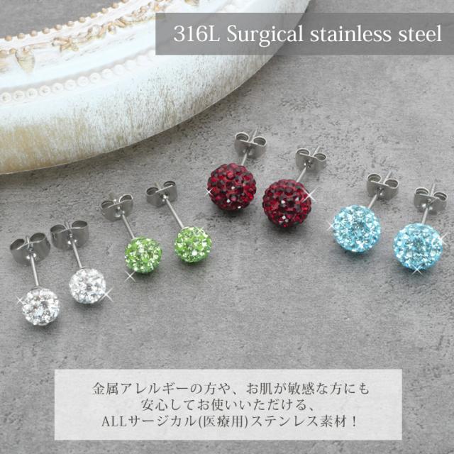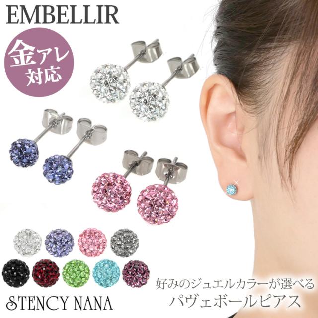 金アレ対応 [EMBELLIR] ステンレスピアス パヴェボールピアス 両耳用 フックピアス サージカルステンレス