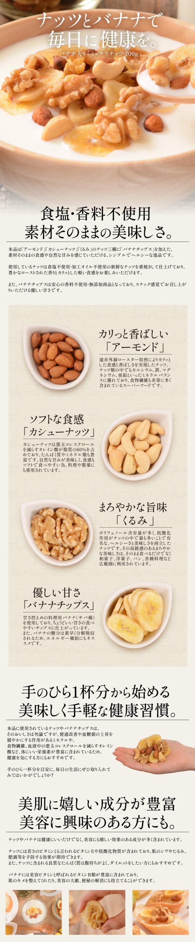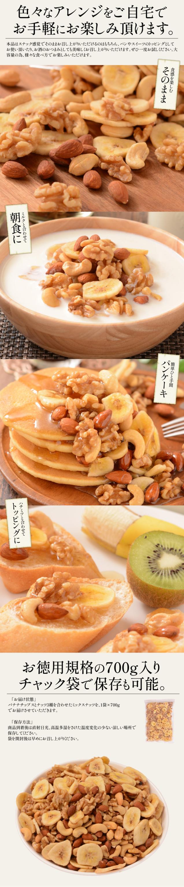 バナナ入り ミックスナッツ 700g バナナチップス アーモンド くるみ カシューナッツ バナナ ナッツ 食塩不使用 加工オイル不使用[送料無料][ポスト投函] ギフト プレゼント お歳暮