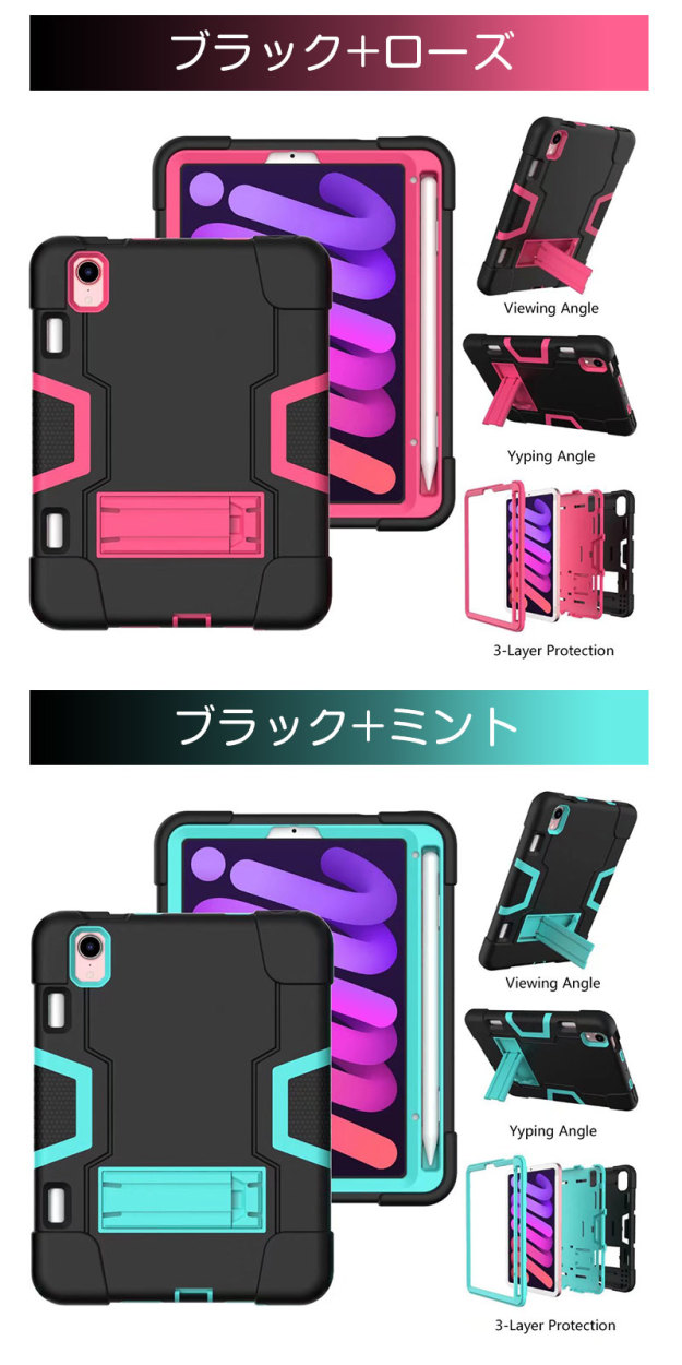 頑丈なPC素材と柔軟なTPU素材の組み合わせでiPadを優しくしっかり保護します。