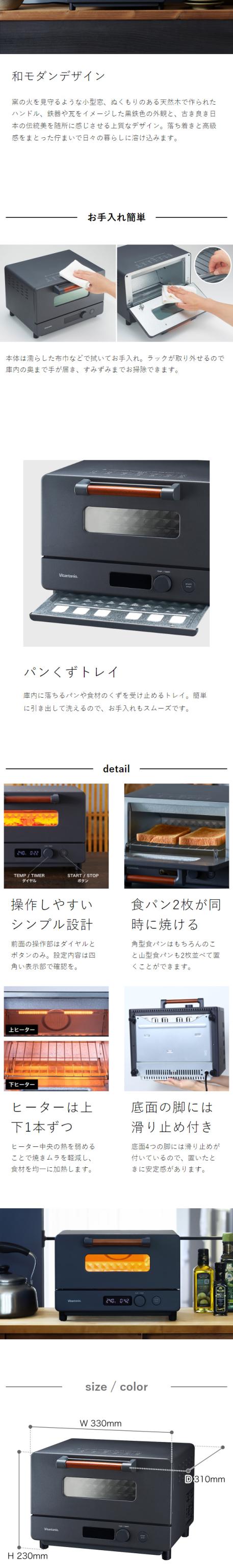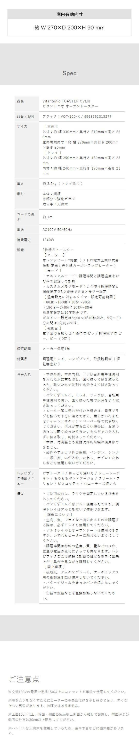 [ Vitantonio オーブントースター VOT-100 ]ビタントニオ トースター 2枚焼き カーボンヒーター 食パン トースト 冷凍パン オーブン ハイパワー 温度調節 タイマー 受け皿 朝食 おしゃれ コンパクト 調理家電 ブラック 黒【送料無料】
