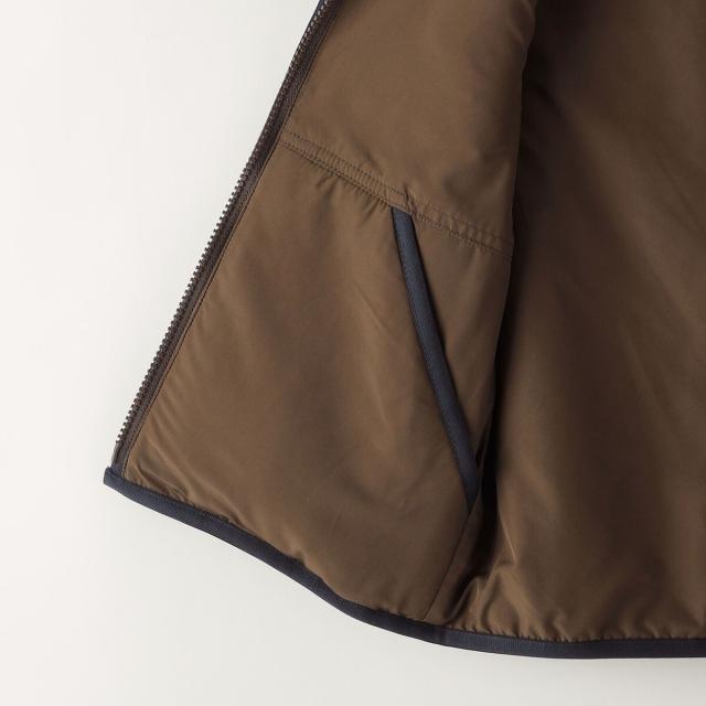 ボリューム感のあるボア素材に、撥水加工を施したタフタ生地を組み合わせたリバーシブルベスト。
