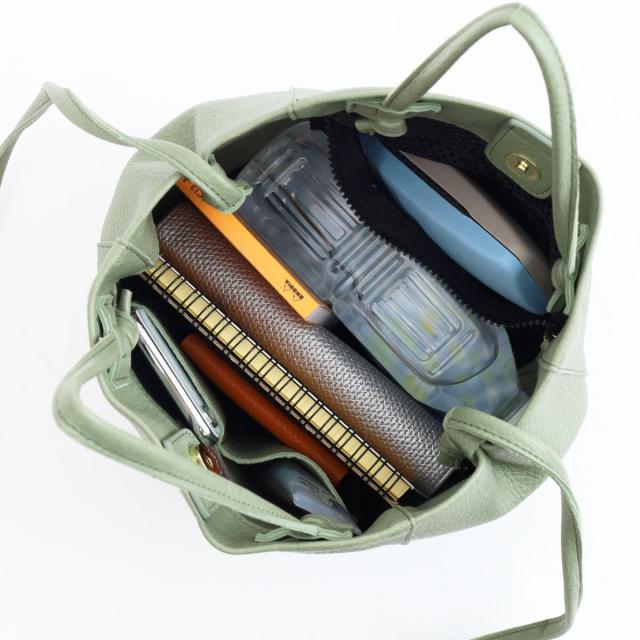 ミディアムサイズのトートですが長財布やペットボトルがしっかり入るサイズ感です。