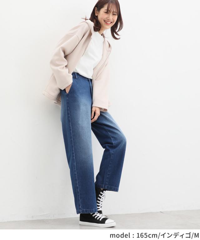 ボトムス パンツ ジーンズ デニム ワイドパンツ 美脚 大人カジュアル 定番 レディース 秋新作 Honeys ハニーズ デニムストレートパンツ