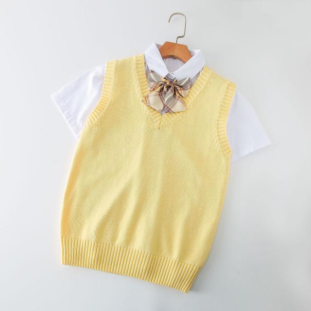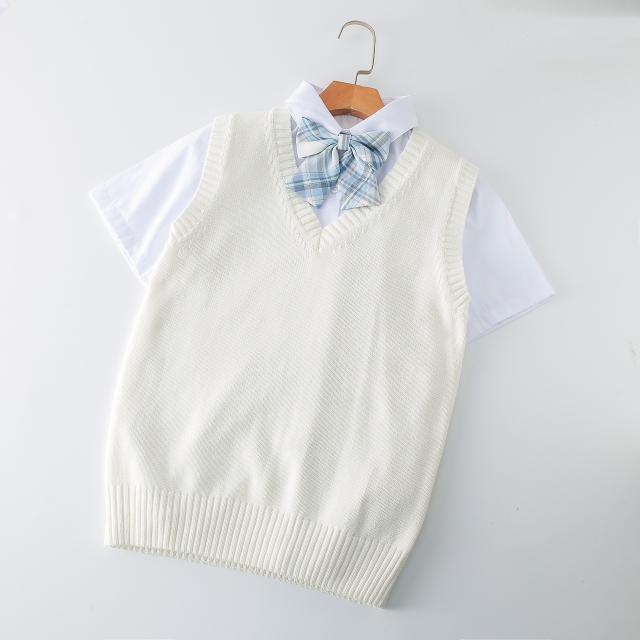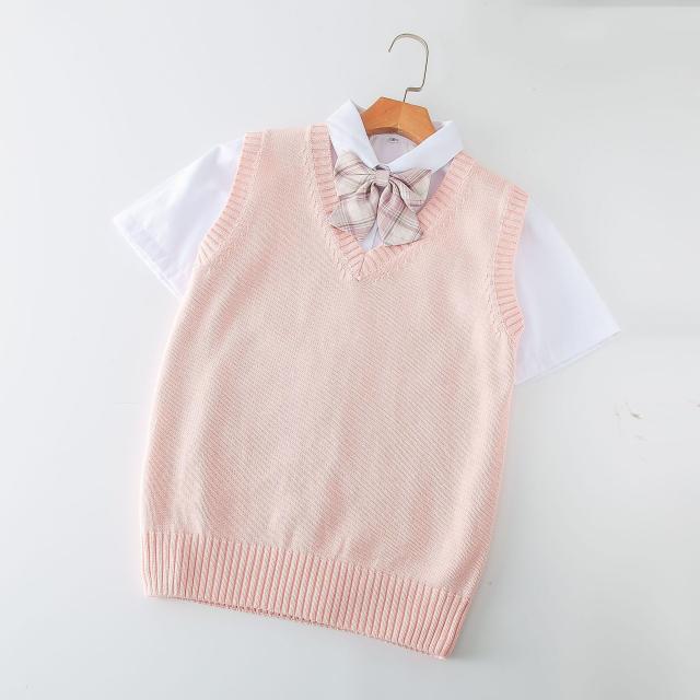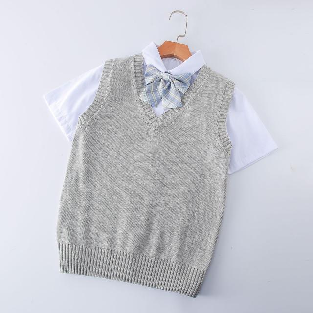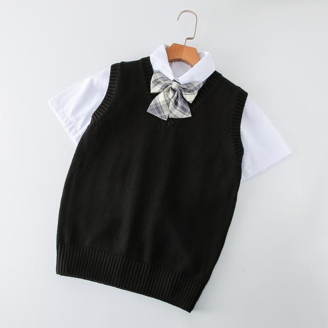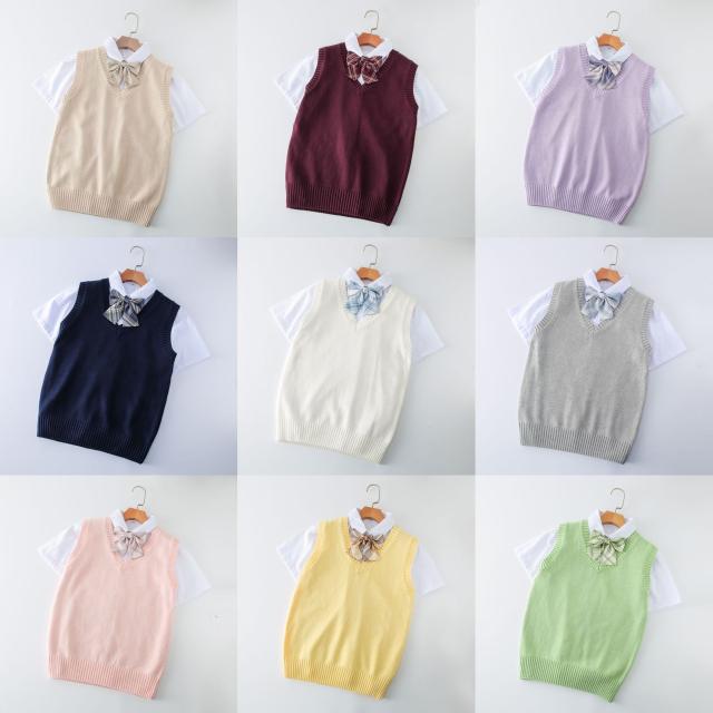 ニットベスト Vネック 学生服 スクールベスト 小学生 ノースリーブ 女子高生 制服 シンプル 無地 ゆったり お洒落 通学 通勤 入学式 卒業式 無地