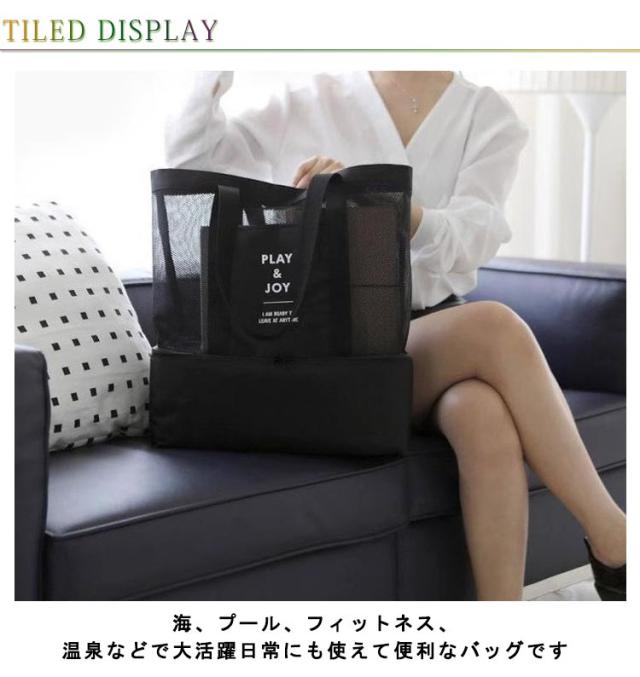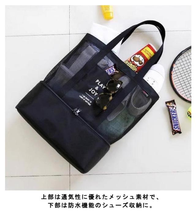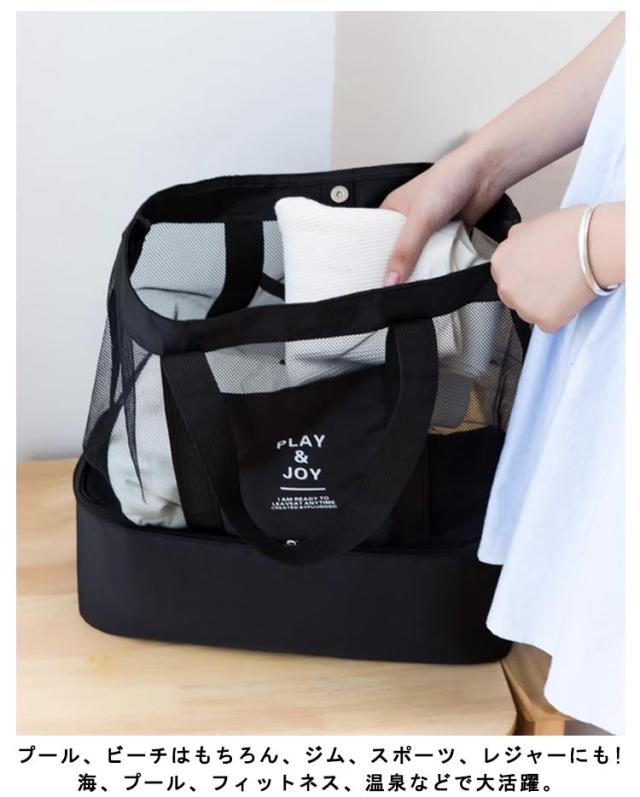 | 海、プール、フィットネス、温泉などで大活躍日常にも使えて便利なバッグです 上部は通気性に優れたメッシュ素材で、下部は防水機能のシューズ収納に。 ドリンク類や食べ物はもちろん、着替えなどを入れるのにもぴったり。 通気性、速乾性抜群で濡れた物を入れても大丈夫。 水泳或いは温泉へ行く時にこれを持ったら、濡れ服と干し服が分けて置けます。 プール、ビーチはもちろん、ジム、スポーツ、レジャーにも! 海、プール、フィットネス、温泉などで大活躍。 | |
