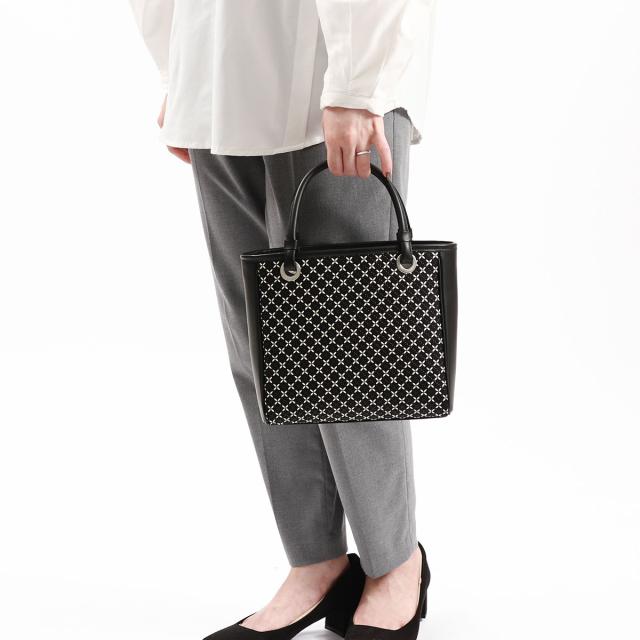印傳屋/インデンヤ/INDEN-YA/上原勇七/甲州印伝/印伝屋/印伝/そよか/17手提/手提げ/手提げバッグ/トートバッグ/トート/ミニトートバッグ/ミニトート/ハンドバッグ/スクエアバッグ/スクエア/四角/バッグ/カバン/鞄/小さめ/小さい/ミニ/コンパクト/軽量/軽い/鹿革/革/本革/レザー/漆/七宝繋ぎ/和柄/和小物/和装/和風/伝統工芸品/工芸品/上品/シンプル/モダン/おしゃれ/きれいめ/お出かけ/自立/大人/ブランド/日本製/女性/婦人/レディース