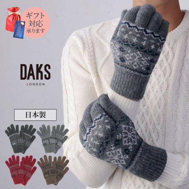 手袋 メンズ かっこいい 日本製 暖かい 自転車 おしゃれ 防寒 グローブ プレゼント ギフト 秋冬 DAKS ダックス ニット 雪柄 ベーシック ニット ブランド