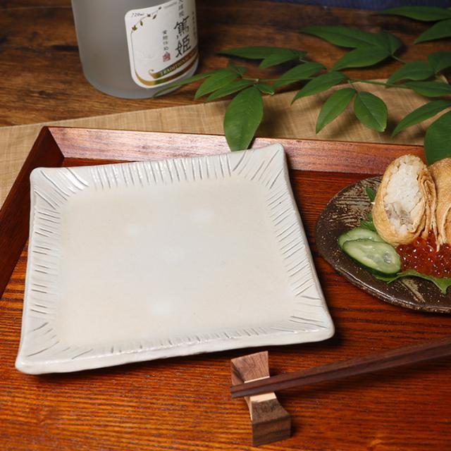 信楽焼 正角皿 16cm 陶器 和食器 ケーキ皿 お皿 おしゃれ 白 一品皿 角皿 洋風 取り皿 プレート 取皿 和風 盛り付け 中皿 やわらぎ正角皿 w420-04