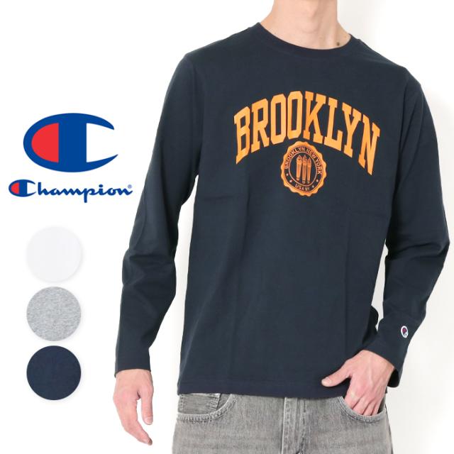 Champion チャンピオン tシャツ 長袖 クルーネック メンズ コットン プリントt アメカジ ブランド シンプル スポーティ チャンピョン ロングスリーブ プリントTシャツ 英字ロゴ 綿100 丸首 アメリカ綿 tee USAコットン 春 秋 カジュアル カレッジロゴ ロンt レギュラーフィット グレー ホワイト ネイビー M L XL 大人カジュアル 20代 30代 40代 50代