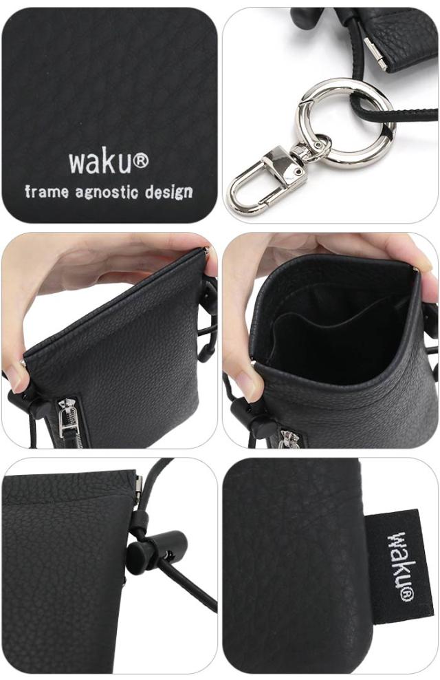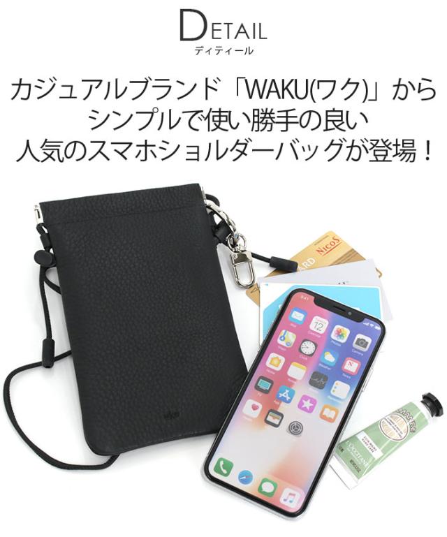 ワク スマホショルダー レディース メンズ waku スマホポーチ ショルダーバッグ ネックポーチ ミニショルダー ショルダー バッグ かばん 斜め掛け 女性 マザーズバッグ 貴重品 サブバッグ おしゃれ シンプル カジュアル きれいめ ブラック 牛革 レザー 軽量 【CPT】 WK-0010