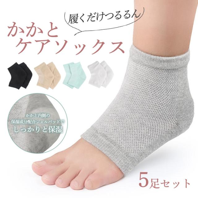 かかとサポーター 保湿 衝撃吸収 ゲルパッド 踵 角質 男女兼用 5足セット 水洗い ずれにくい