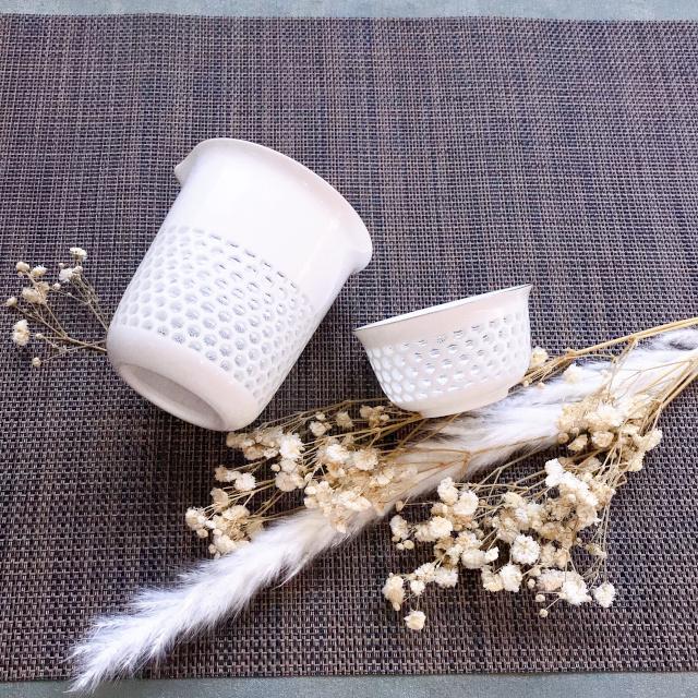 光を通して模様が浮かび上がる「蛍手」陶器。 |