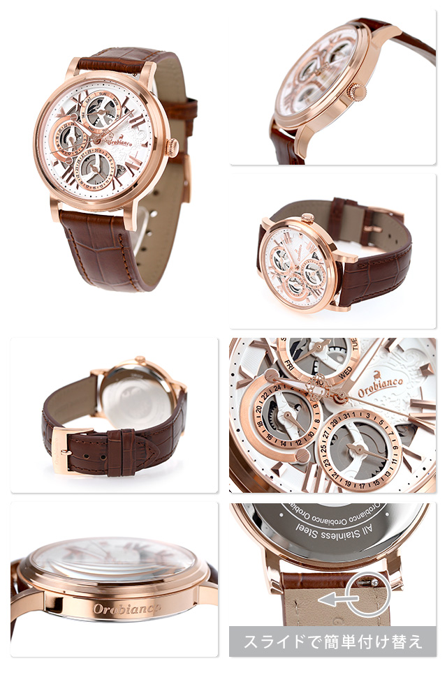 正規品 7年保証キャンペーン オロビアンコ オープンハート メンズ 腕時計 OR002-9 Orobianco ORAKLASSICA アナログ ブラウン ◆オロビアンコ(Orobianco)は、1996年、ジャコモ・ヴァレンティーニとエリサ・ロヴァティによって設立された新進ファクトリーブランドです。イタリア語で「黄金、貴重なもの、重要なもの」を意味します。 クラシカルなデザインに遊び心が感じられる「ORAKLASSICA」。ワンポイントのスケルトンデザインが施されたきめのフェイスに、ローマ数字の文字盤が特徴です。技巧的な文字盤の中には様々な要素が含まれており、12時位置には曜日・6時位置には日付・9時位置には 24時間計を配置しています。アンティークな文字盤と現代的なデザインが融合したアイテムです。カジュアルスタイルからビジネスシーンにまで、シーンを問わずお使いいただけます。