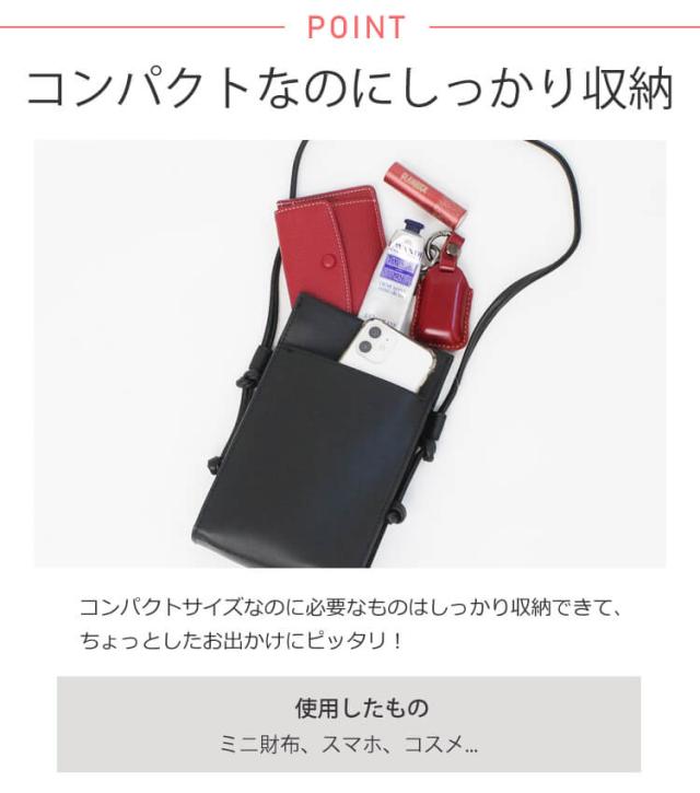 ミニウォレットやスマホ、リップなど必要最低限の物が入ります。