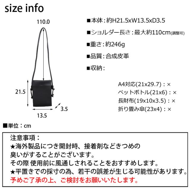 縦:約21.5cm 幅:約13.5cm マチ:約3.5cm ショルダー長さ:最大約110cm(調整可)