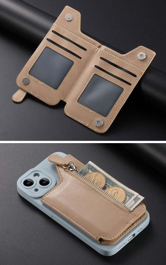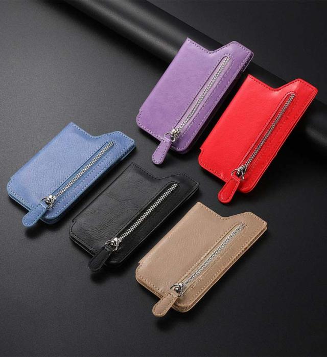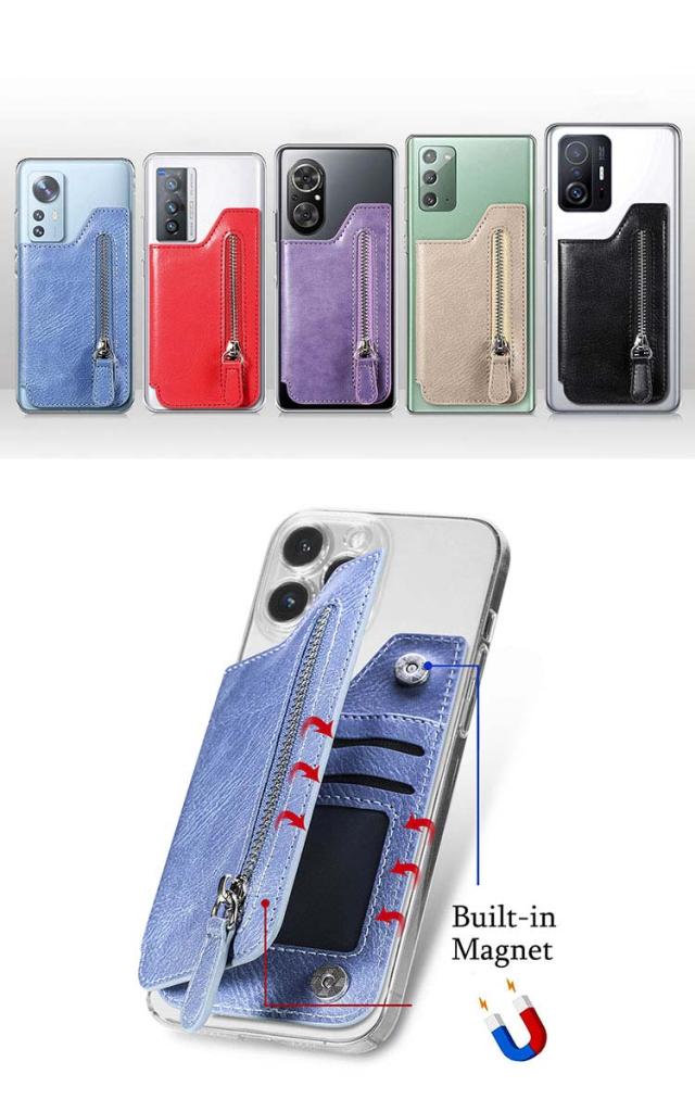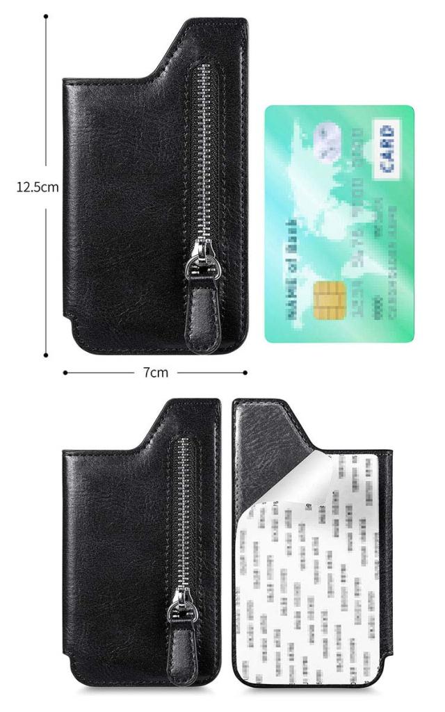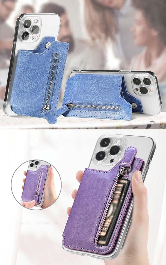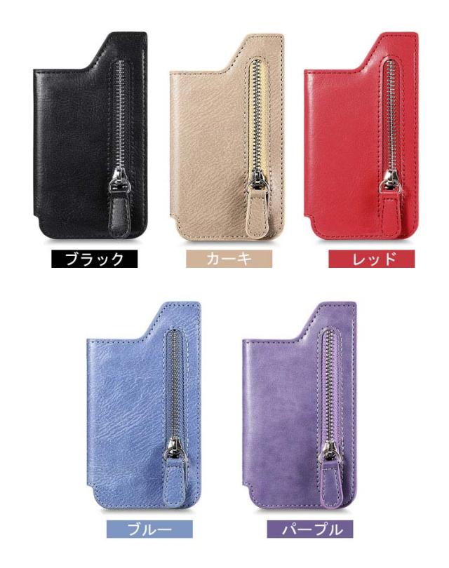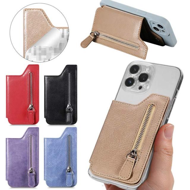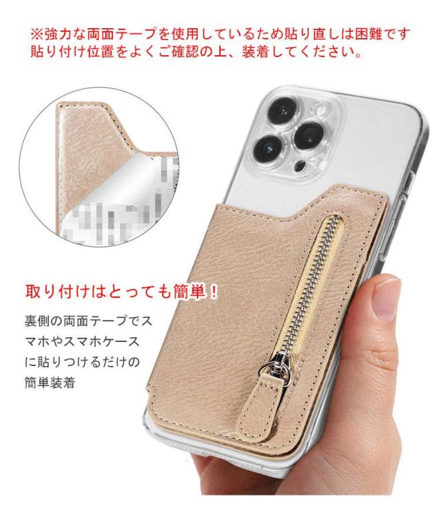 スマホに貼り付ける スマホ シンプル 手帳ケース カードケース 名刺入れ iPhone Androidのスマートフォン ファスナー付きポケット パスケース カード収納 スタンド機能 PUレザー 背面ポケット 貼り直し便利 カード入れ アンドロイド