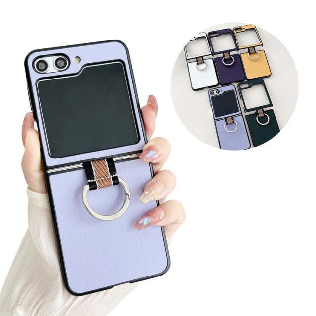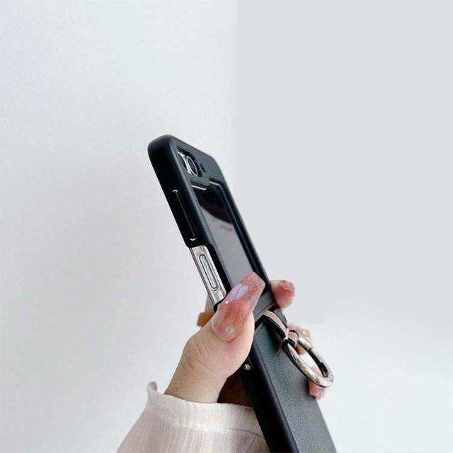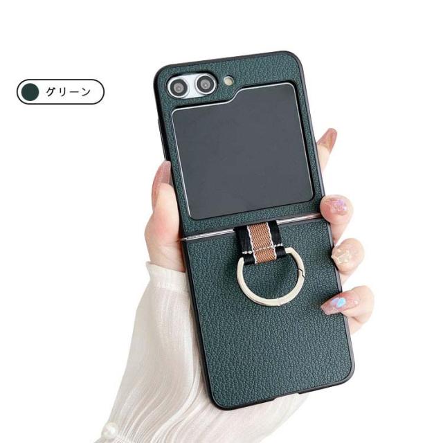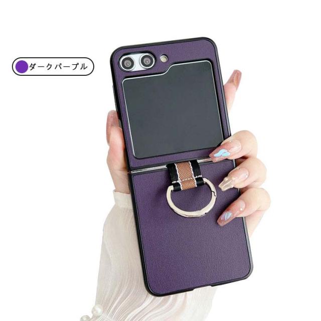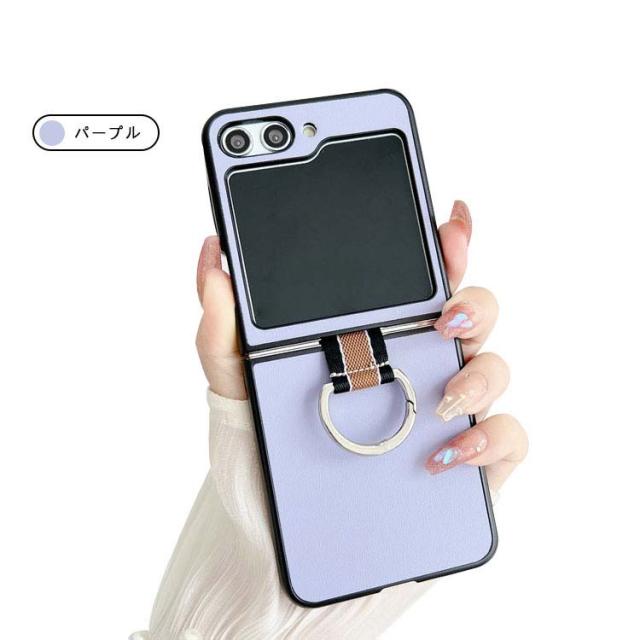 Samsung Galaxy Z Flip5 ケース / カバー 折りたたみ型 一体型リング付き PUレザー調 ケース ギャラクシー Z フリップ5 アンドロイド おしゃれ スマートフォン/スマホケース/カバー ストラップホール付き おすすめ