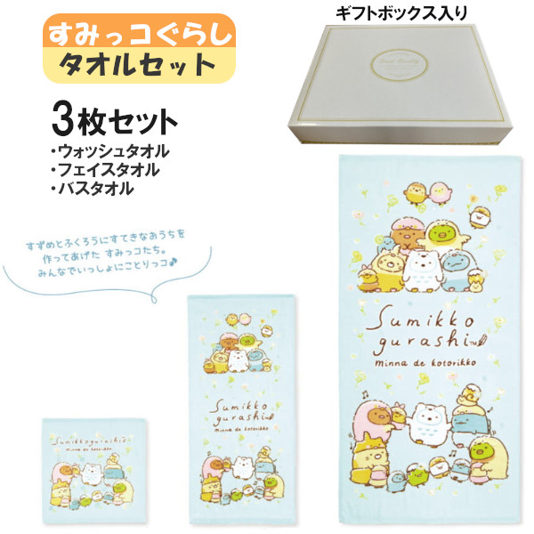 すみっコぐらし コトりっコ タオル 3枚セット ウォッシュタオル フェイスタオル バスタオル ギフトボックス入り 犬飼タオル かわいい キッズ 子供 すみっこ キャラクター タオルハンカチ プレゼント ギフト