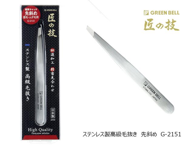 グリーンベル 匠の技 毛抜き 精密合わせ 鍛造加工 眉毛・ムダ毛「ステンレス製高級毛抜き 先斜め G-2151」