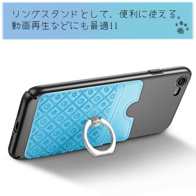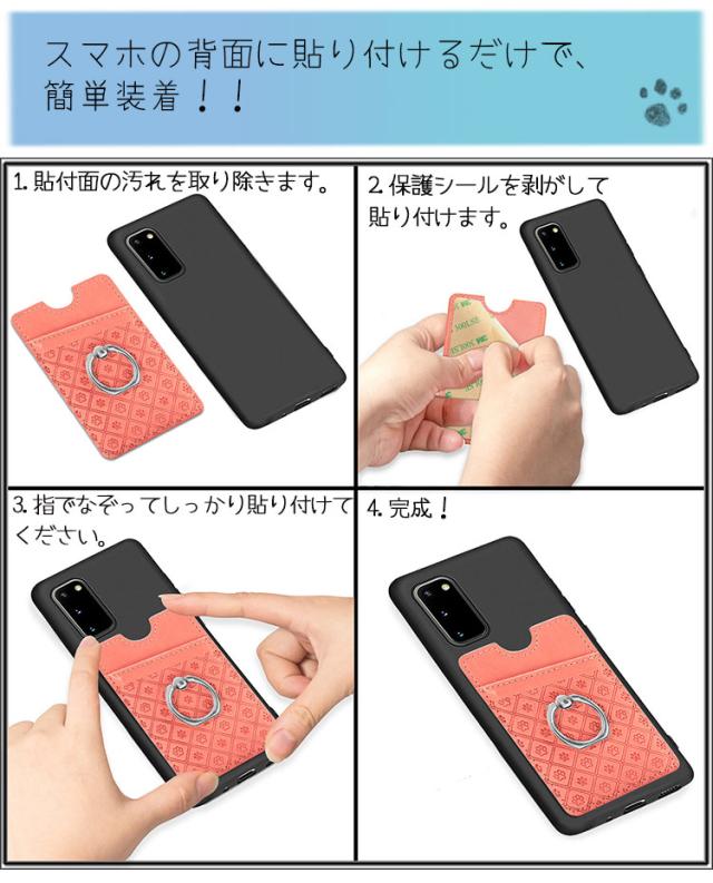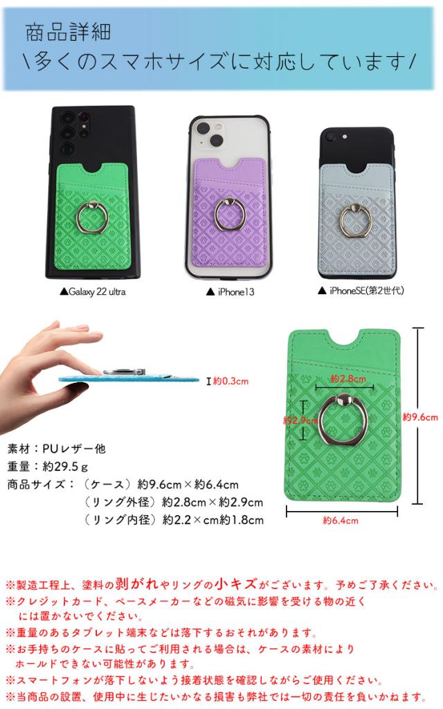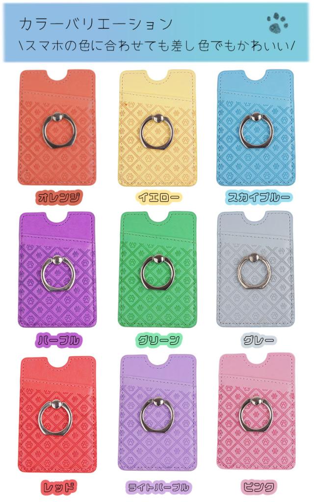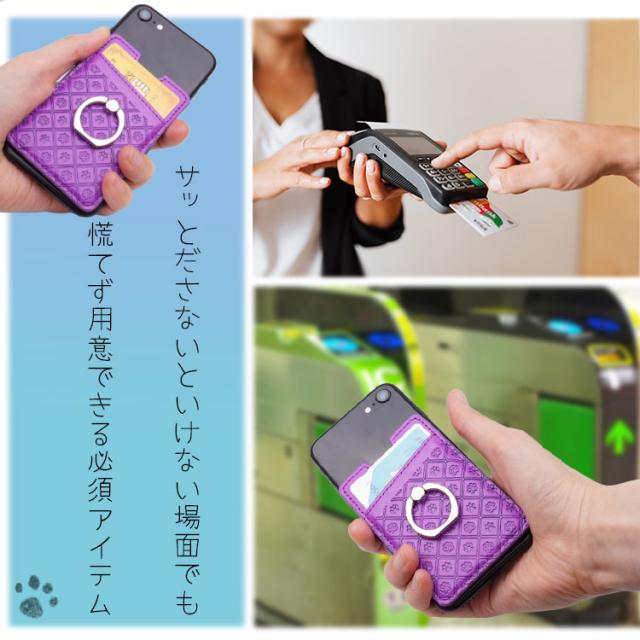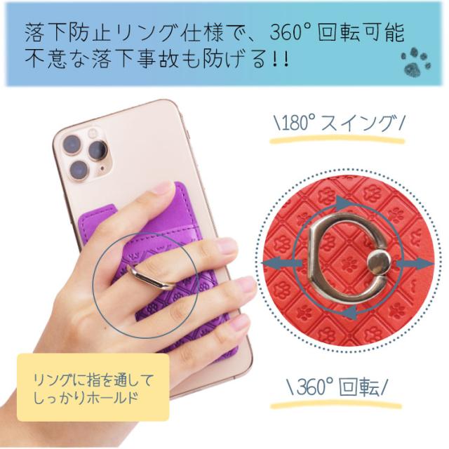 スマホ リング 肉球 スタンド カード入れ 両面テープ 落下防止 リング カード入れ 背面ポケット スマートフォン 粘着