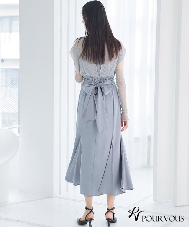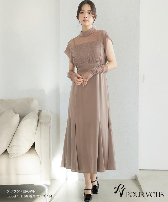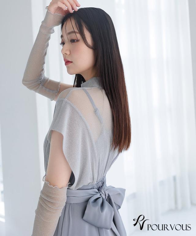 アームカバー付きラメチュール×サテンマーメイドワンピース/ 755231525