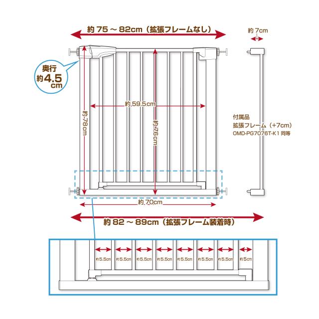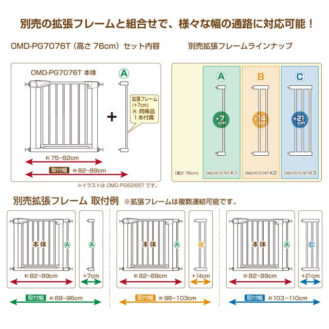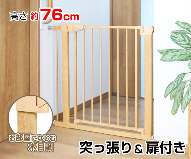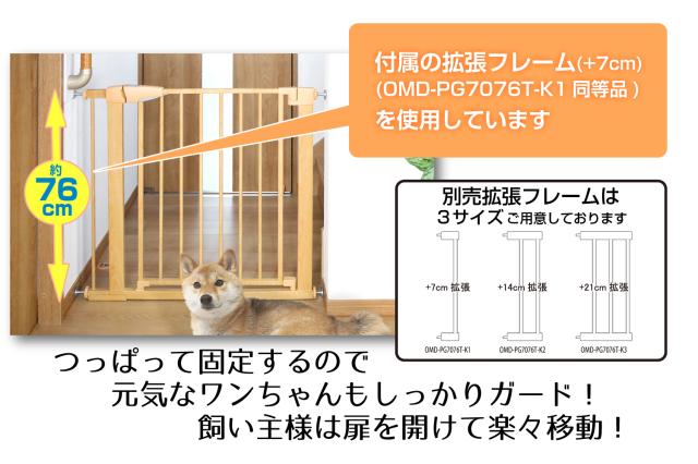 突っ張りペットゲート 扉付き OMD-PG7076T【高さ76cm】木目調 幅約75〜89cm≪拡張フレームも充実!≫(オートクローズ 犬 )