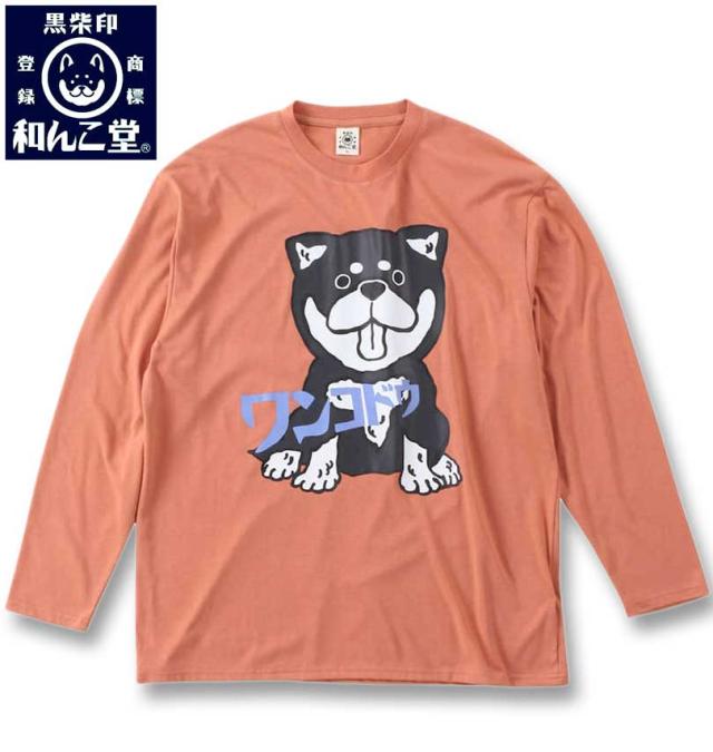 大きいサイズ 黒柴印和んこ堂 天竺長袖Tシャツ オレンジ 3L 4L 5L 6L 8L/1258-3300-1-39