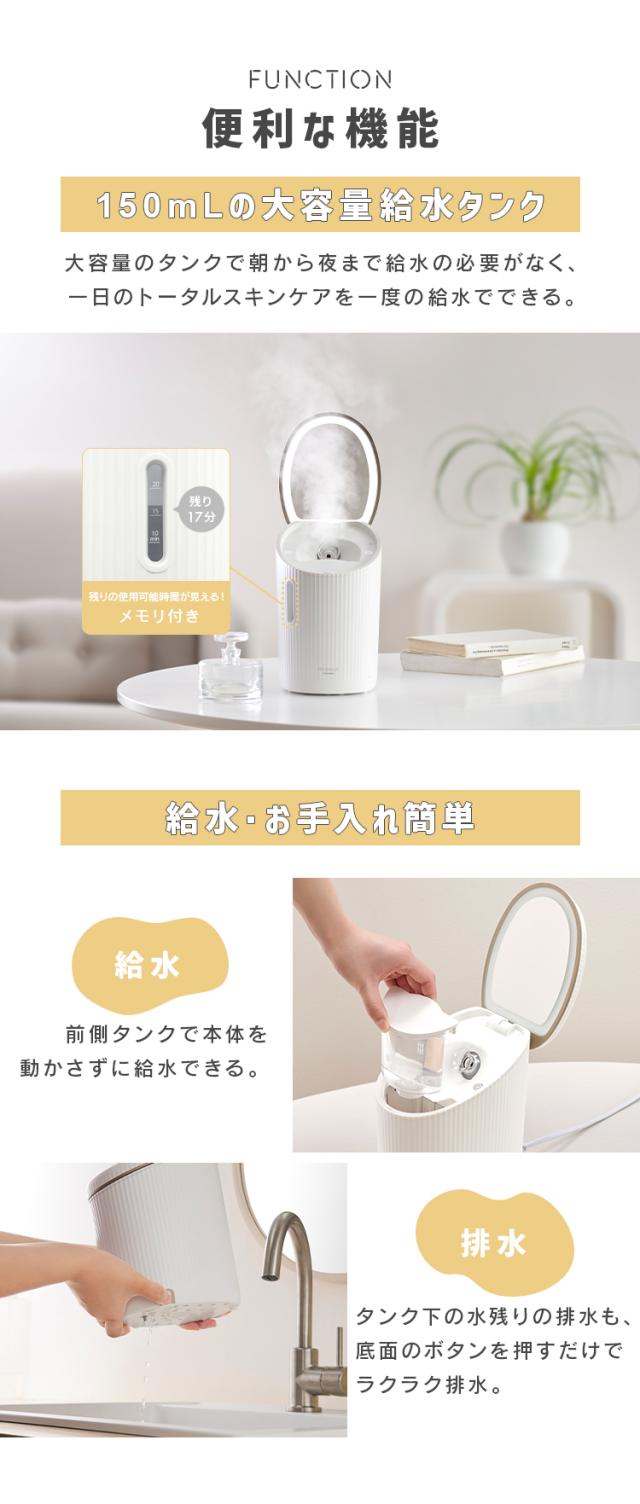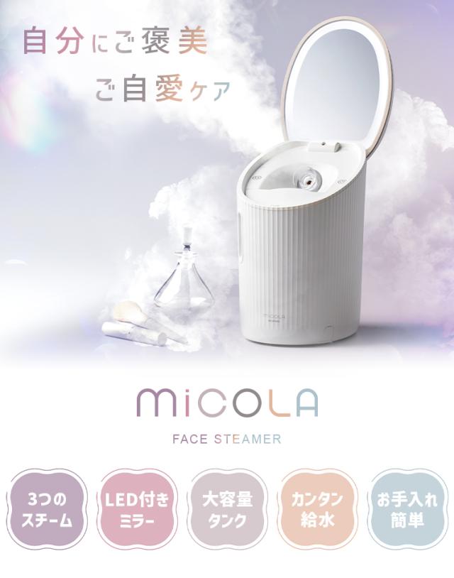 フェイススチーマー スチーマー コンパクト アイリスオーヤマ ミラー付 LEDミラー スキンケア 保湿 乾燥対策 毛穴ケア 美顔器 美容家電 プレゼント ホワイト 白 MiCOLA ミコラ 母の日 ギフト