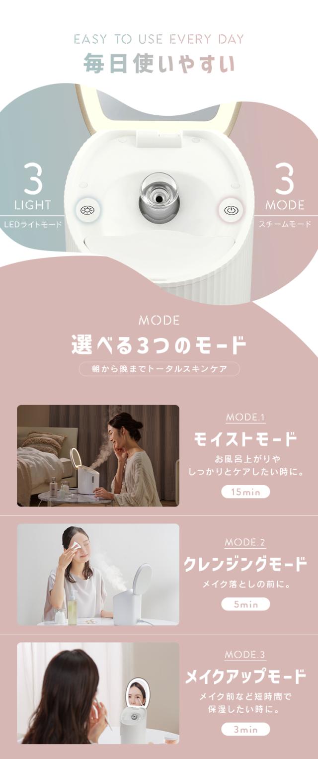 用途に合わせてモードが選べ、朝〜夜までトータルスキンケア。