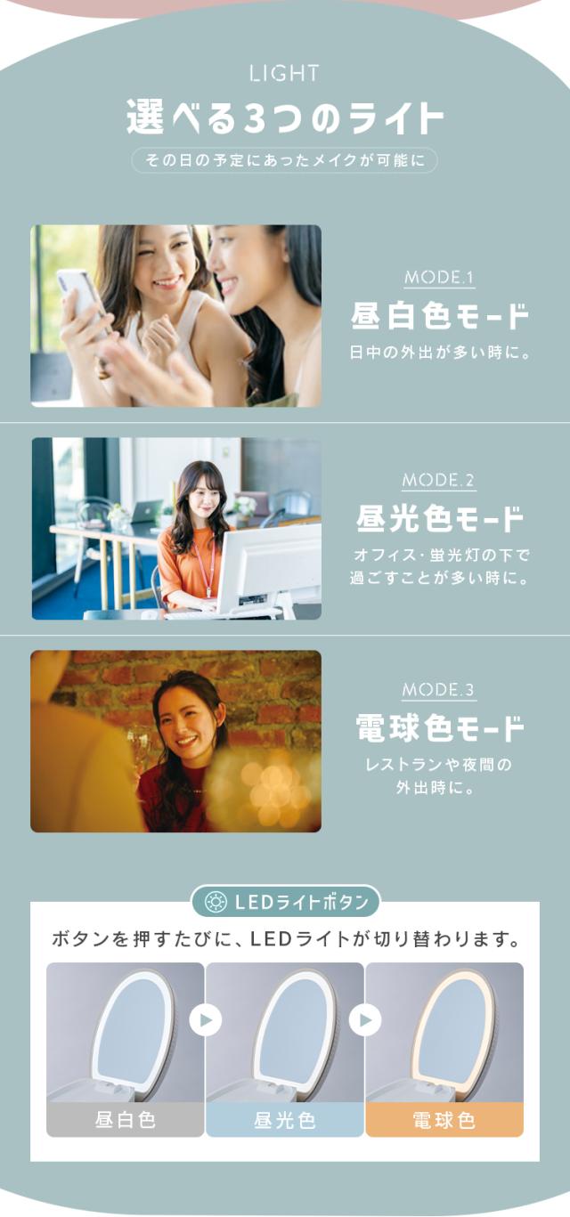 調色(3段階:昼白色/昼光色/電球色)可能なミラー付き。