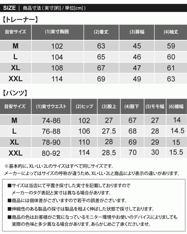 ※基本的に、XL・LL・2Lのサイズはすべて同じサイズです。