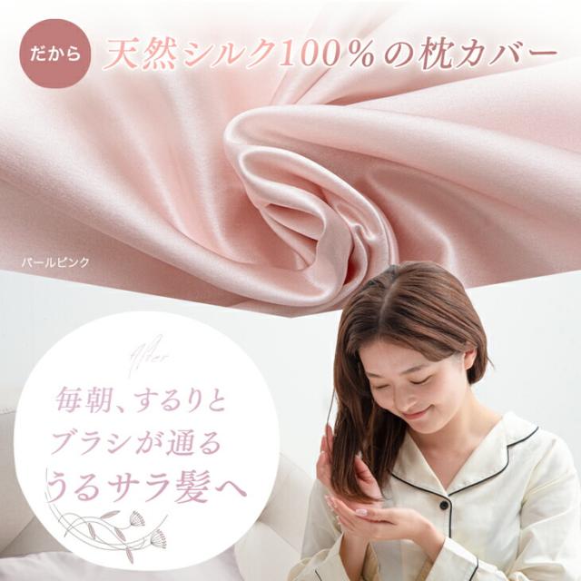 シルク 枕カバー 2枚組 43×63cm ヒアルロン酸配合 25匁 片面 天然 シルク100% ファスナー式 洗える 可愛い 髪 絹 枕 シルク枕カバー 保湿 美容 綿100% プレゼント おしゃれ うるさら美髪 うるサラ美髪