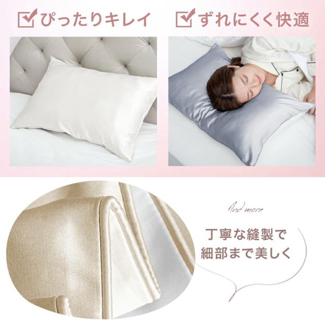 2枚組 枕カバー シルク 髪 片面 シルク100% ヒアルロン酸 43 × 63 まくらカバー ヘアケア ファスナー ピローケース ピンク ブルー グリーン パープル ブルー ゴールド ホワイト ギフト
