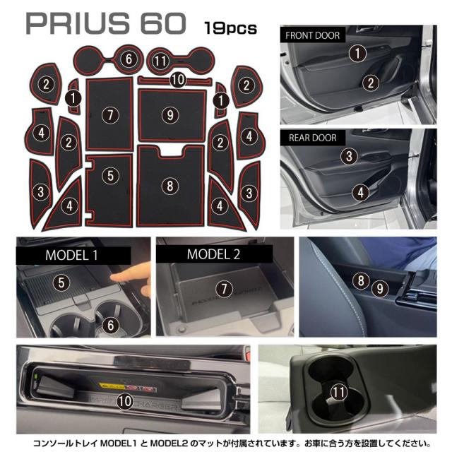 TOYOTA プリウス 60系 ラバーマット 全4色 19ピースセット CC-PR60-RM | スロットパッド ラバー マット ポケットマット 車種専用設計 インテリアマット すべり止めマット アクセサリー カスタム
