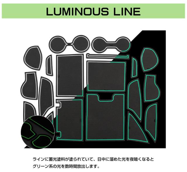 ※適合車種欄に記載されている車両でも、年式・グレード・オプション等の状況により一部・又は全てのマットが適合しない場合がございます。予めご了承ください。 ※取り付け場所に既に純正マットが敷いてある場合は、純正マットを取り外してからお取り付けください。 ※長時間湿度の高い車内に放置した場合に、本製品の油分が車両側に付着する場合がございます。中性洗剤等を使用して落とすことができますが、定期的に乾燥をさせる等のメンテナンスをお願い致します。 ※商品到着時に、マットに丸まったクセが付いている場合がございます。その場合は95℃〜100℃のお湯に平らになるように5分程浸け置きしたらお湯から取り出して水気を拭き取り乾燥させてください。 ※装着・使用後の商品の交換及び返品はお受けできません。 ※蓄光タイプは光を十分にあてるとより強く光りますが、光が不十分ですと光り方が弱くなる場合がございます。 |