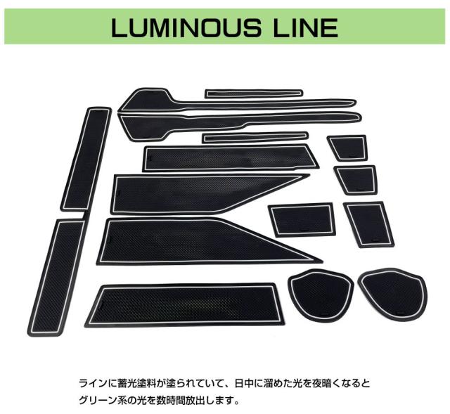※適合車種欄に記載されている車両でも、年式・グレード・オプション等の状況により一部・又は全てのマットが適合しない場合がございます。予めご了承ください。 ※取り付け場所に既に純正マットが敷いてある場合は、純正マットを取り外してからお取り付けください。 ※長時間湿度の高い車内に放置した場合に、本製品の油分が車両側に付着する場合がございます。中性洗剤等を使用して落とすことができますが、定期的に乾燥をさせる等のメンテナンスをお願い致します。 ※商品到着時に、マットに丸まったクセが付いている場合がございます。その場合は95℃〜100℃のお湯に平らになるように5分程浸け置きしたらお湯から取り出して水気を拭き取り乾燥させてください。 ※装着・使用後の商品の交換及び返品はお受けできません。 ※蓄光タイプは光を十分にあてるとより強く光りますが、光が不十分ですと光り方が弱くなる場合がございます。 |